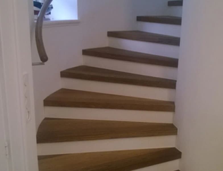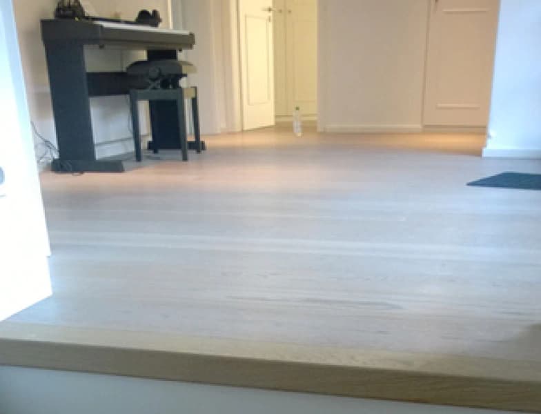 Ein besonderes Highlight war die Anfertigung und spezielle Behandlung eines Buchenhandlaufs, der perfekt mit dem Eichenparkett harmonierte. Der in die Jahre gekommene Teppichboden wurde professionell entfernt, und eine umfassende Aufbereitung des Estrichs folgte, um die Grundlage für unseren Parkettboden zu schaffen. Dabei haben wir uns für einen naturgeölten, geräucherten und weiß geölten 3-Schicht-Parkett entschieden, der den Charakter und die Eleganz der Villa unterstreicht.